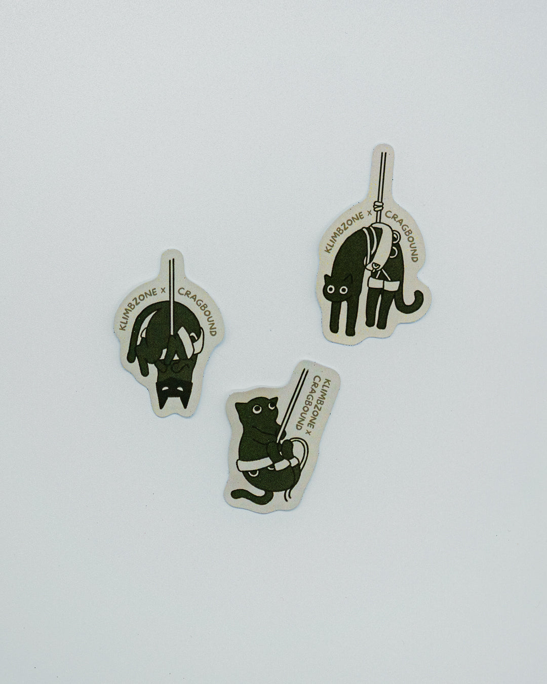 Three cute cats, one big adventure! The Klimbzone Sticker Pack features three adorable feline climbers inspired by the spirit of Batman Start and rope climbing at our favorite crag. Each cat is caught mid-send — hanging, belaying, or going for that paw-some top out.